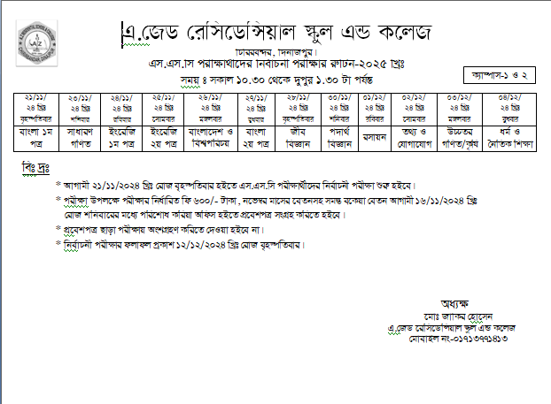 এস.এস.সি-২০২৫ ইং সালের নির্বাচনী পরীক্ষার রুটিন